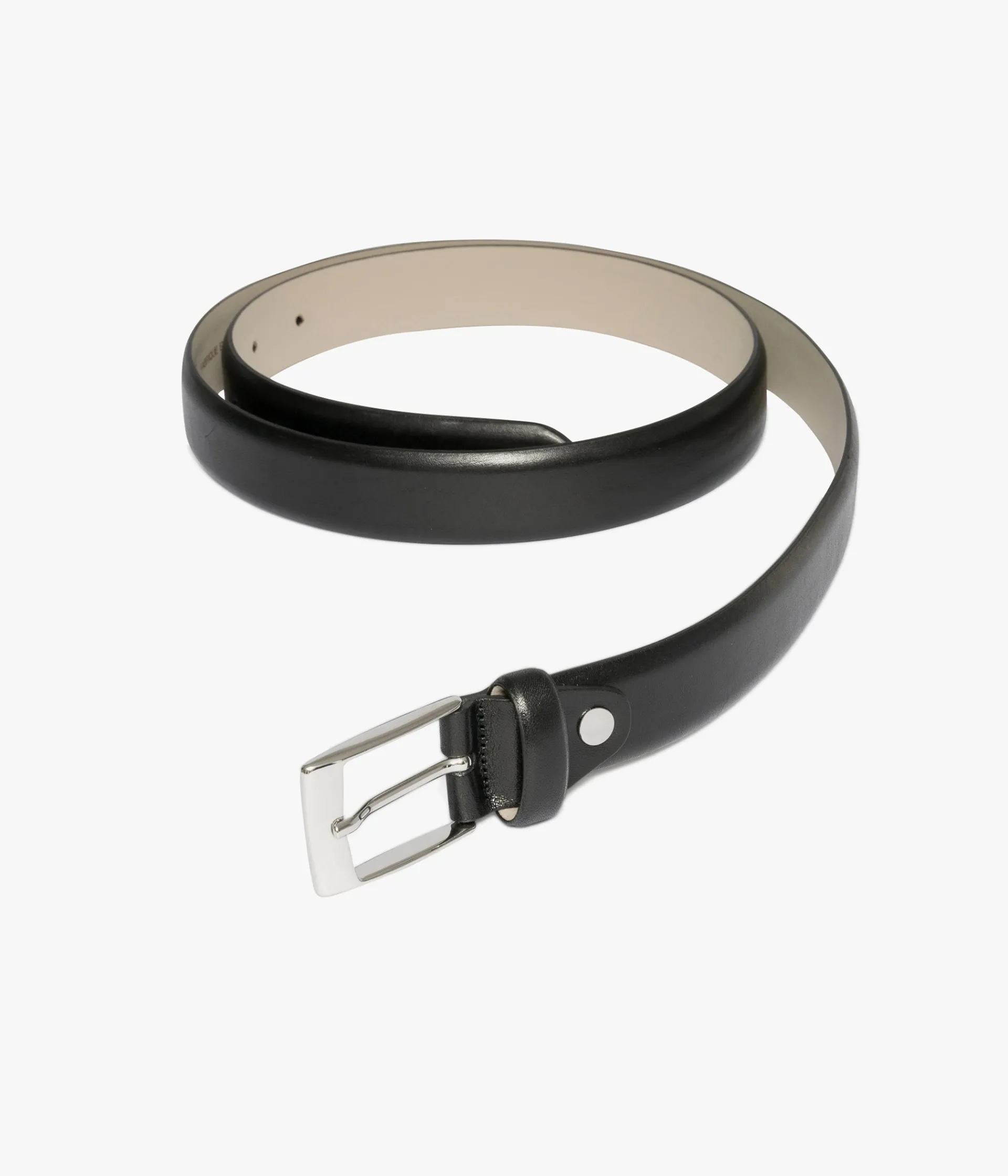 Une élégante ceinture en cuir noir au style minimaliste. Elle se ferme par une boucle à ardillon rectangle en métal argenté avec passant en cuir. Largeur 3 cm. Si la longueur ne vous convient pas, vous pouvez la réajuster vous même. Pour cela, munissez-vous d'un tournevis adapté et retirez la vis à l'arrière de la boucle. Coupez avec un cutteur la longueur que vous souhaitez retirer. Prenez l'ancienne pièce comme gabarit pour marquer la position de la vis. Faites une marque puis trouez avec une pince poinçon. Enfin, vous pouvez remettre la boucle sur la ceinture ainsi que la vis.