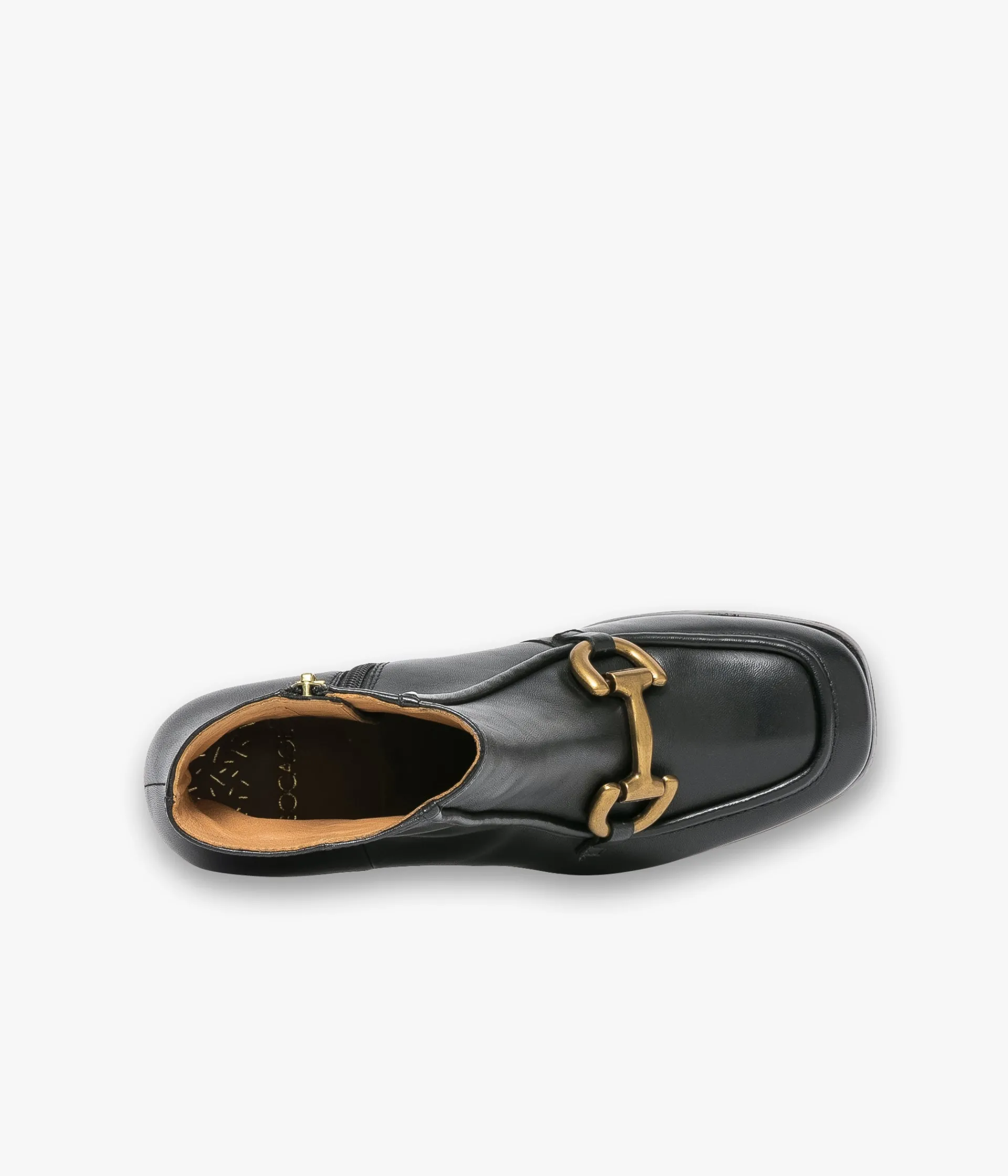 Un boots noir en cuir lisse fabriqué avec soin, qui se distingue par sa surpiqûre en relief sur le dessus inspirée du mocassin et sa boucle en métal brossé finition antique. Un boots à bout carré entièrement doublé cuir avec semelle intérieure cuir dotée d’une fine mousse. Il repose sur une épaisse semelle et un large talon lamellé collé.