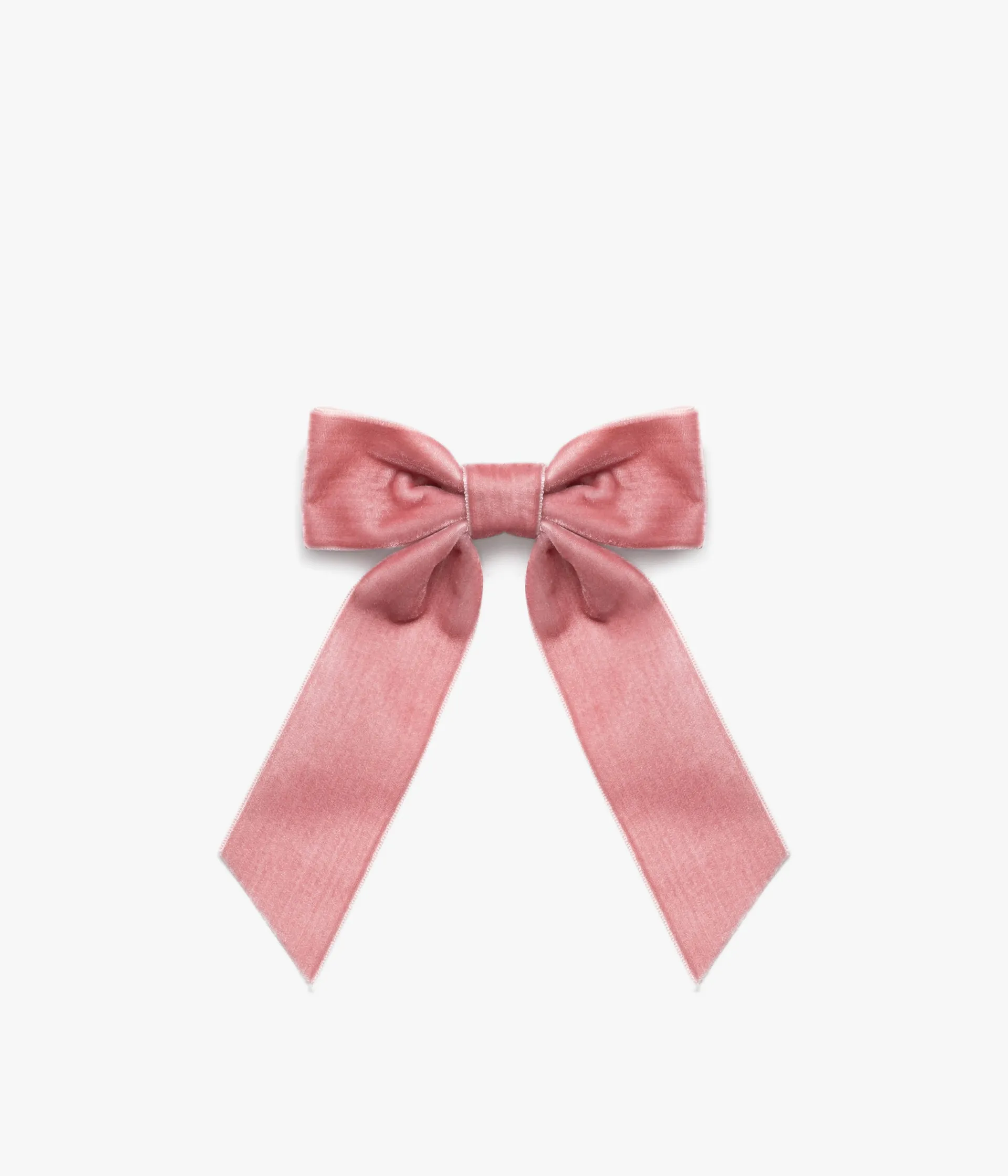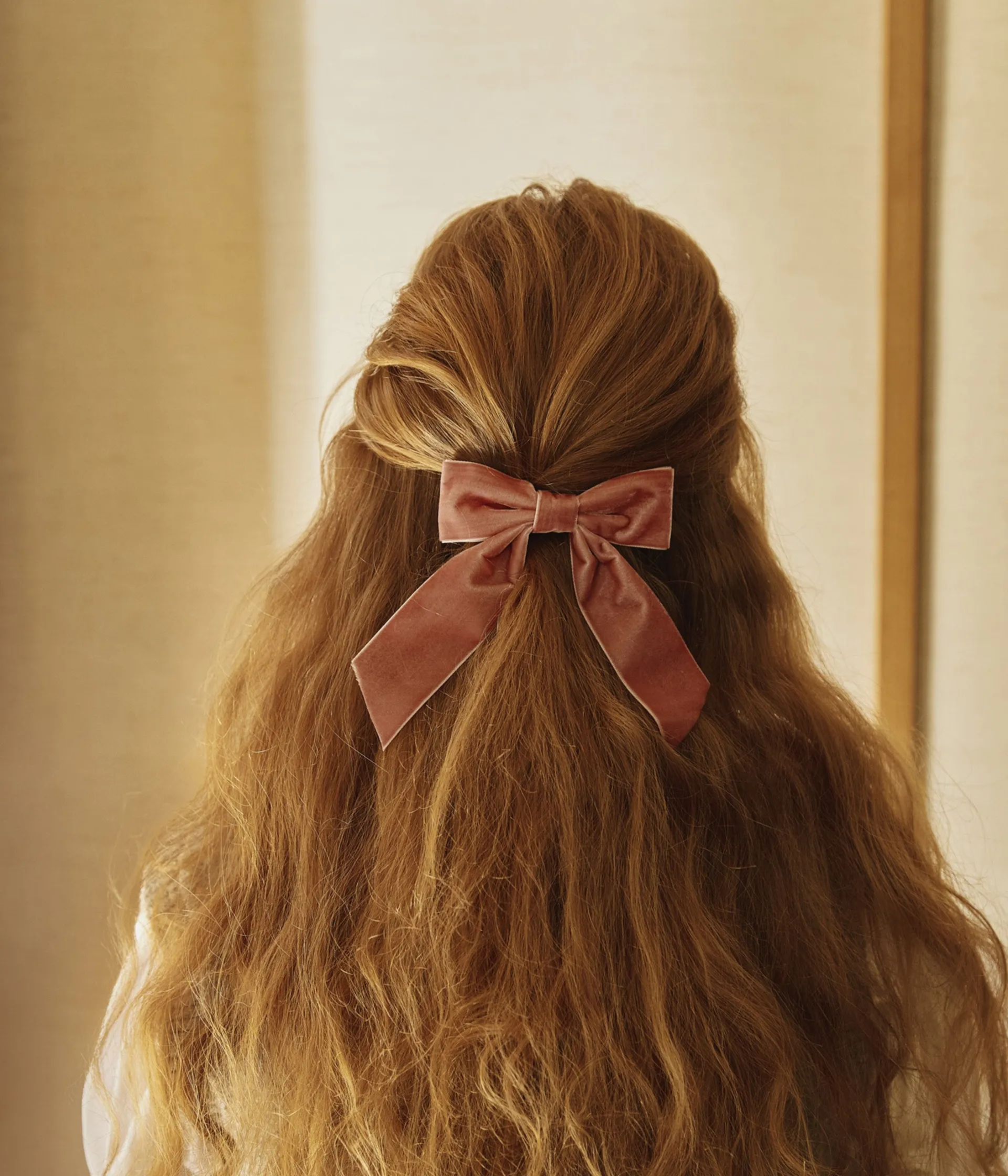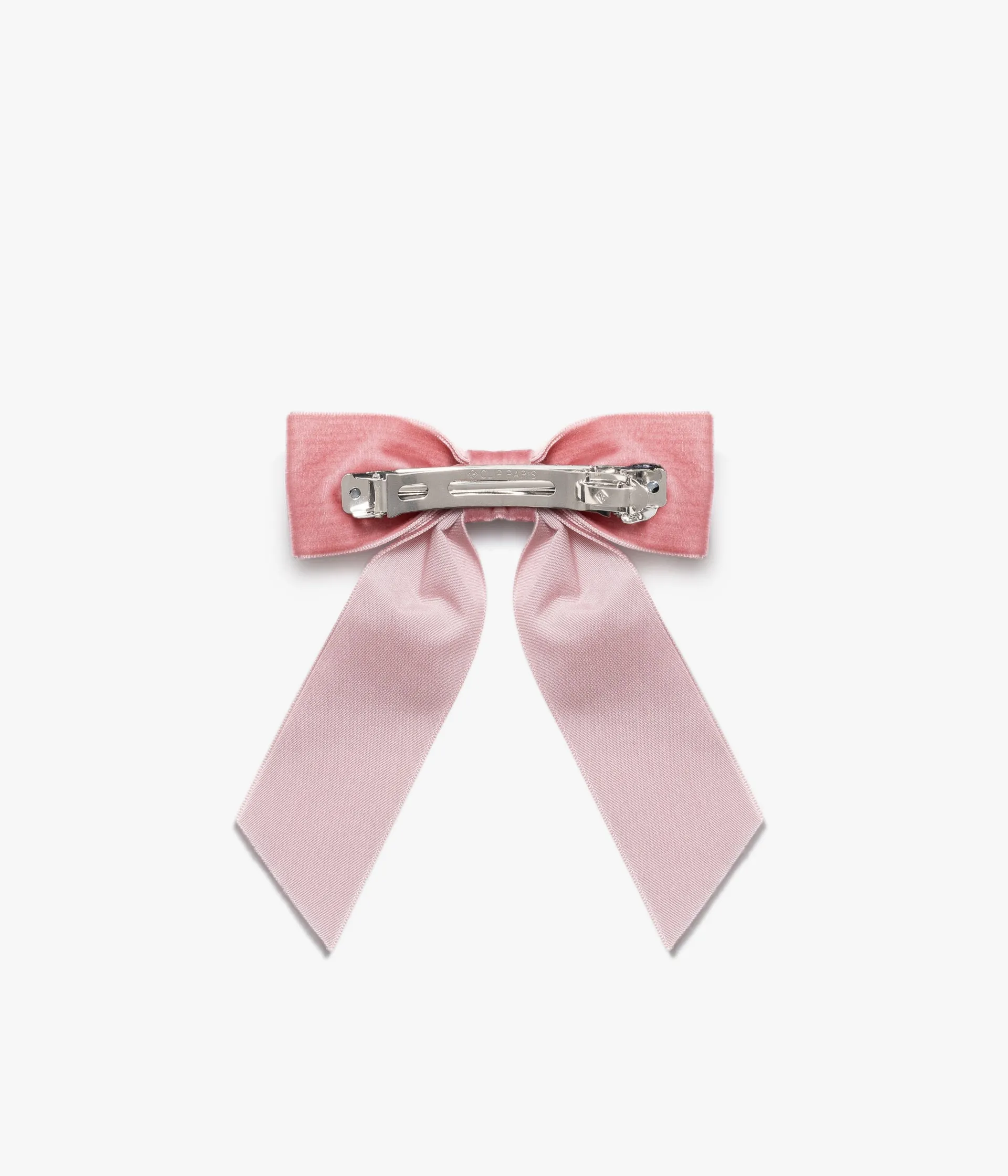 Une barrette nœud en velours rose qui permettra de créer de jolies coiffures classiques. Une pièce intemporelle parmi les accessoires de coiffure qui sublimera les coiffures en un clip. Facile à positionner, elle permet de créer une demi-queue de cheval ou d’orner un chignon. Fermeture facile à clipser. Dimensions : 10×15 cm.