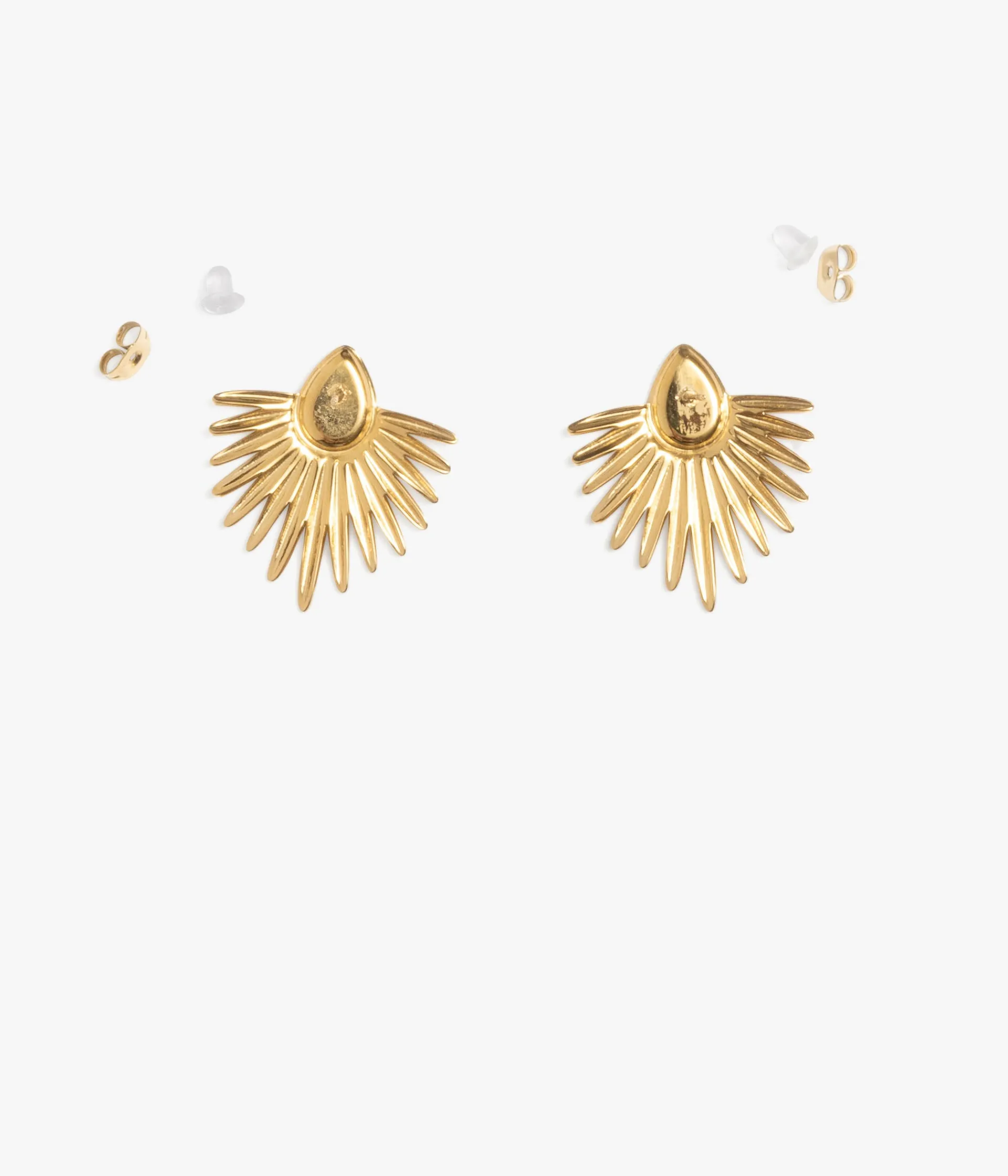 Une jolie paire de boucles d'oreilles dorées et blanches en forme de demi lune. Un bijou en acier inoxydable, un alliage hypoallergénique qui ne change pas de couleur, ne ternit pas et s’entretient facilement.