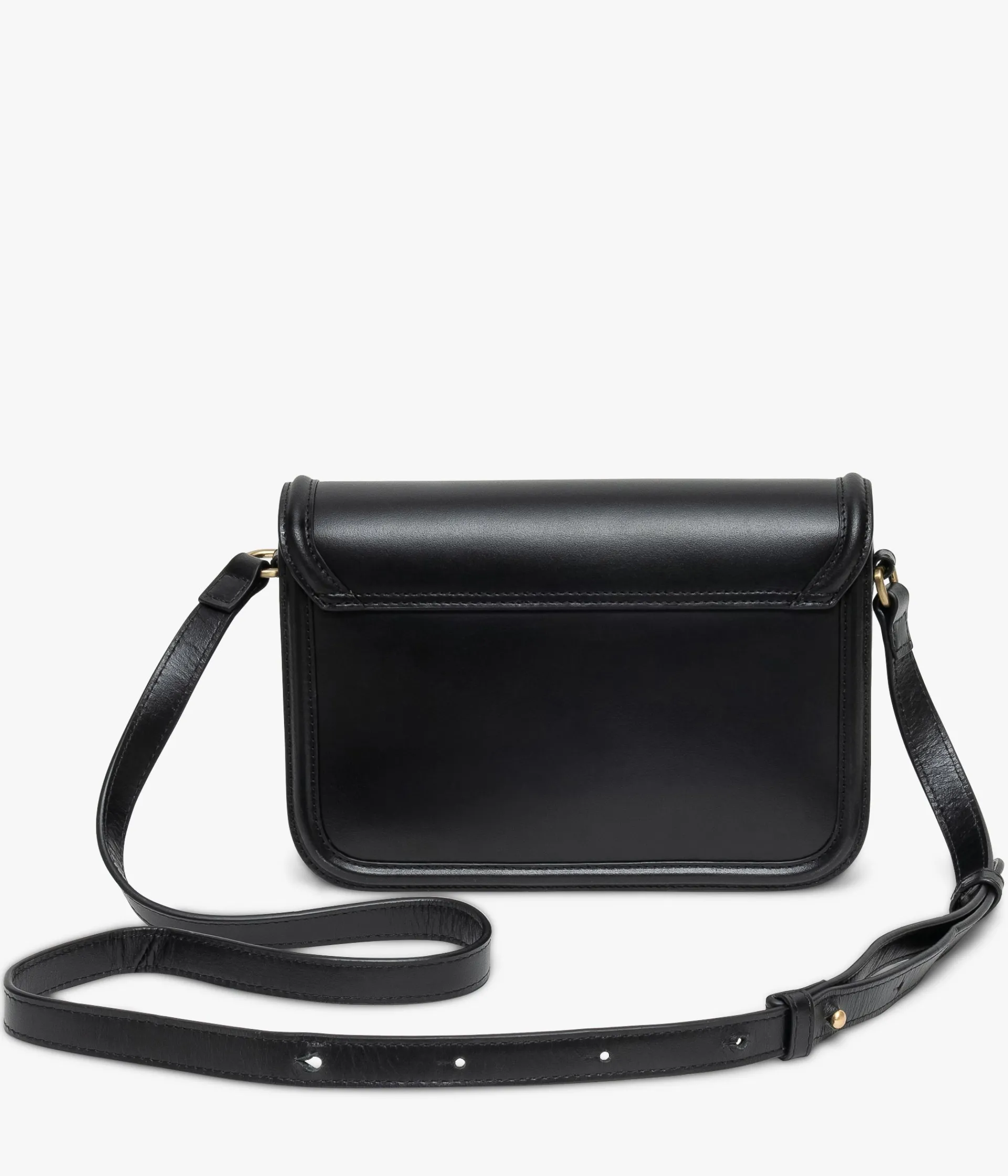 Nouvel icône Bocage, ce sublime sac noir en cuir lisse arbore une esthétique élégante et intemporelle aux finitions soignée. Un sac à rabat fermé par un sublime fermoir signature en métal brossé. Il offre deux compartiments et deux petites pochettes. Muni d'une bandoulière ajustable il offre un porté épaule ou croisé. Doublure en polyester recyclé. Dimensions : H17 x L24 x P 5 cm. Bandoulière environ 53 cm. Sac livré dans un pochon en coton.