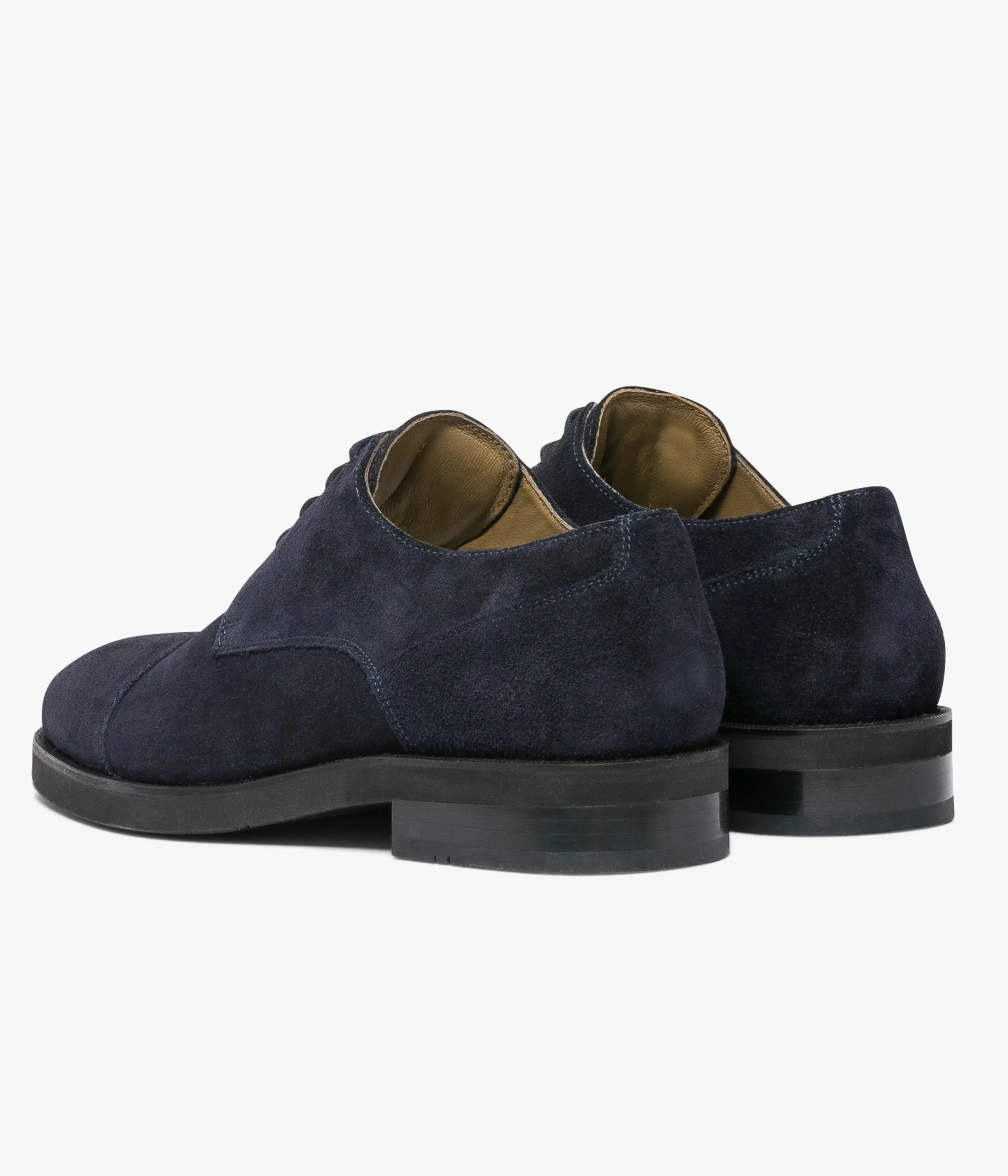 Un derby marine fabriqué avec le plus grand soin, qui offre une allure toujours élégante mais moins formelle grâce à son dessus en cuir velours. Il se distingue par son bout droit et ses doubles surpiqûres réparties sur l’ensemble du pied. Une chaussure entièrement doublée cuir avec semelle intérieure cuir dotée d’une fine mousse. Elle repose sur une épaisse semelle avec trépointe ciselée recouverte d’un patin à crampons.