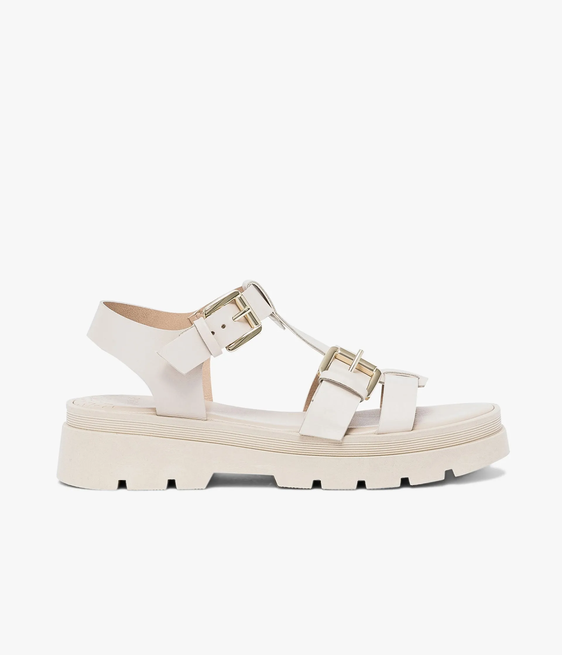 Une sandale beige en cuir lisse fabriquée avec soin dans notre propre atelier en Italie. Une chaussure forme Salomé qui offre un parfait maintien grâce à son jeu de brides et s’ajuste par deux boucles dorées. Elle repose sur une épaisse semelle crantée avec semelle intérieure cuir ultra confortable.