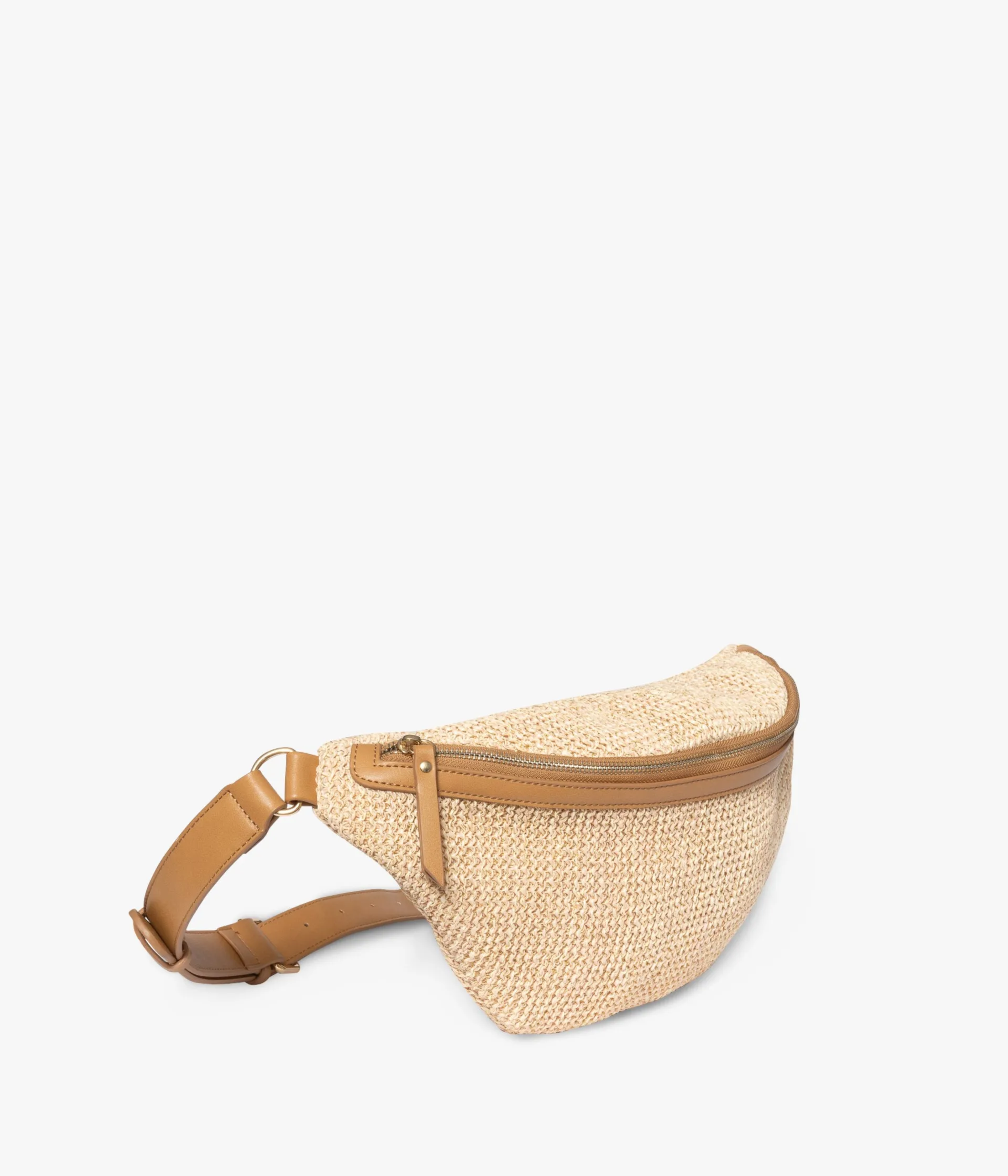 Un sac banane beige en paille de papier incrustée de fil doré et souligné par des touches de camel. Une version XL de la banane traditionnelle qui offre un grand volume de rangement. Elle se ferme par zip et se porte de travers grâce à une bandoulière ajustable par boucle en métal doré. Dimensions : 38*19*10 cm. Ce sac banane apporte une touche naturelle à vos looks.