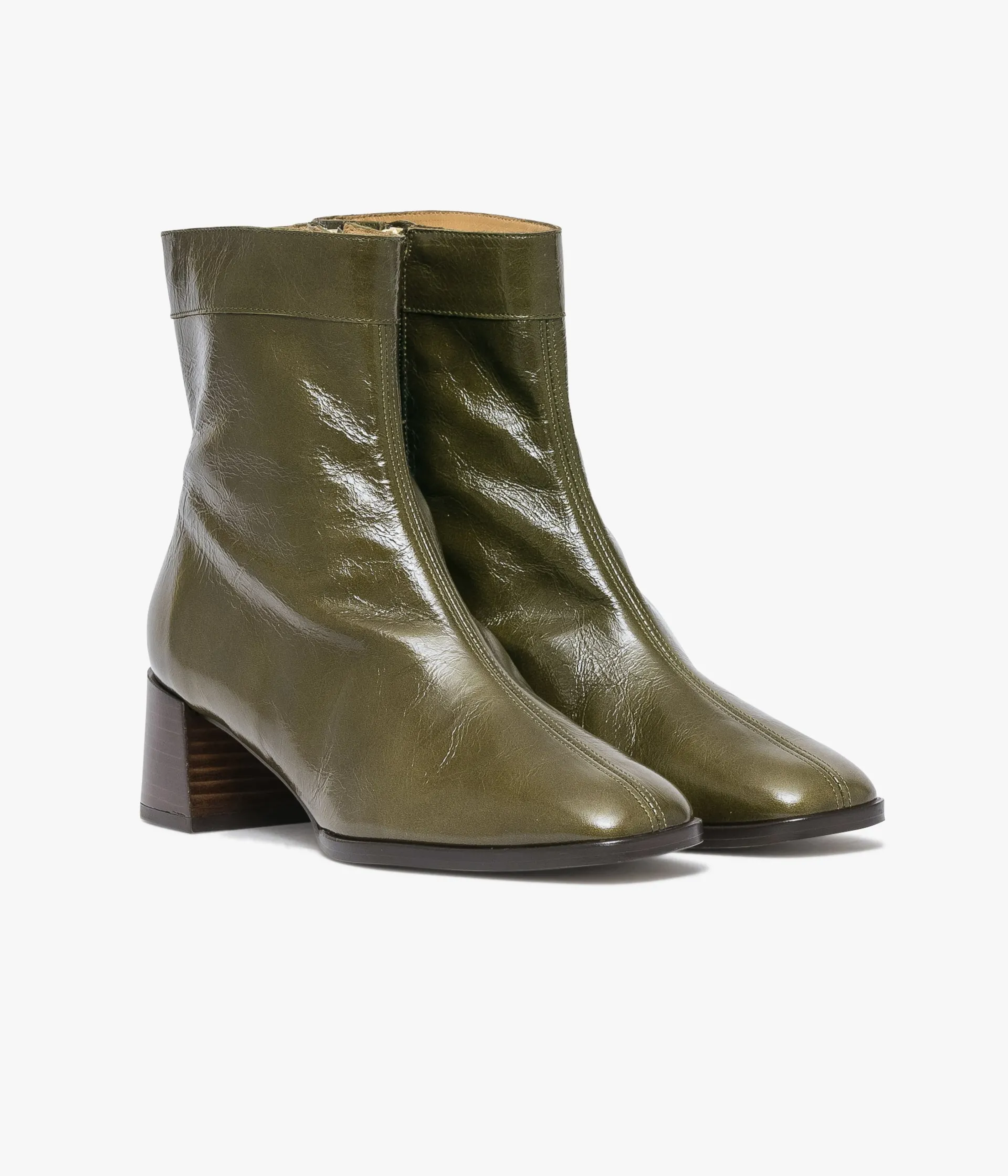 Un boots vert olive en cuir vintage fabriqué avec soin dans notre propre atelier en France, au cœur du Maine et Loire (49). Une bottine très féminine à la ligne sobre et élégante avec bout carré et surpiqûre sur le dessus. Entièrement doublée cuir elle possède une semelle intérieure cuir dotée d’une fine mousse. Ce boots repose sur une semelle fine avec trépointe cuir débordante et talon lamellé collé très confortable. Son cuir vintage est un cuir d'aspect vieilli qui se patine avec le temps, un cuir brillant qui affiche un aspect plus ou moins froissé, dont la tonalité peut varier, et qui peut avoir un aspect « déjà porté ».