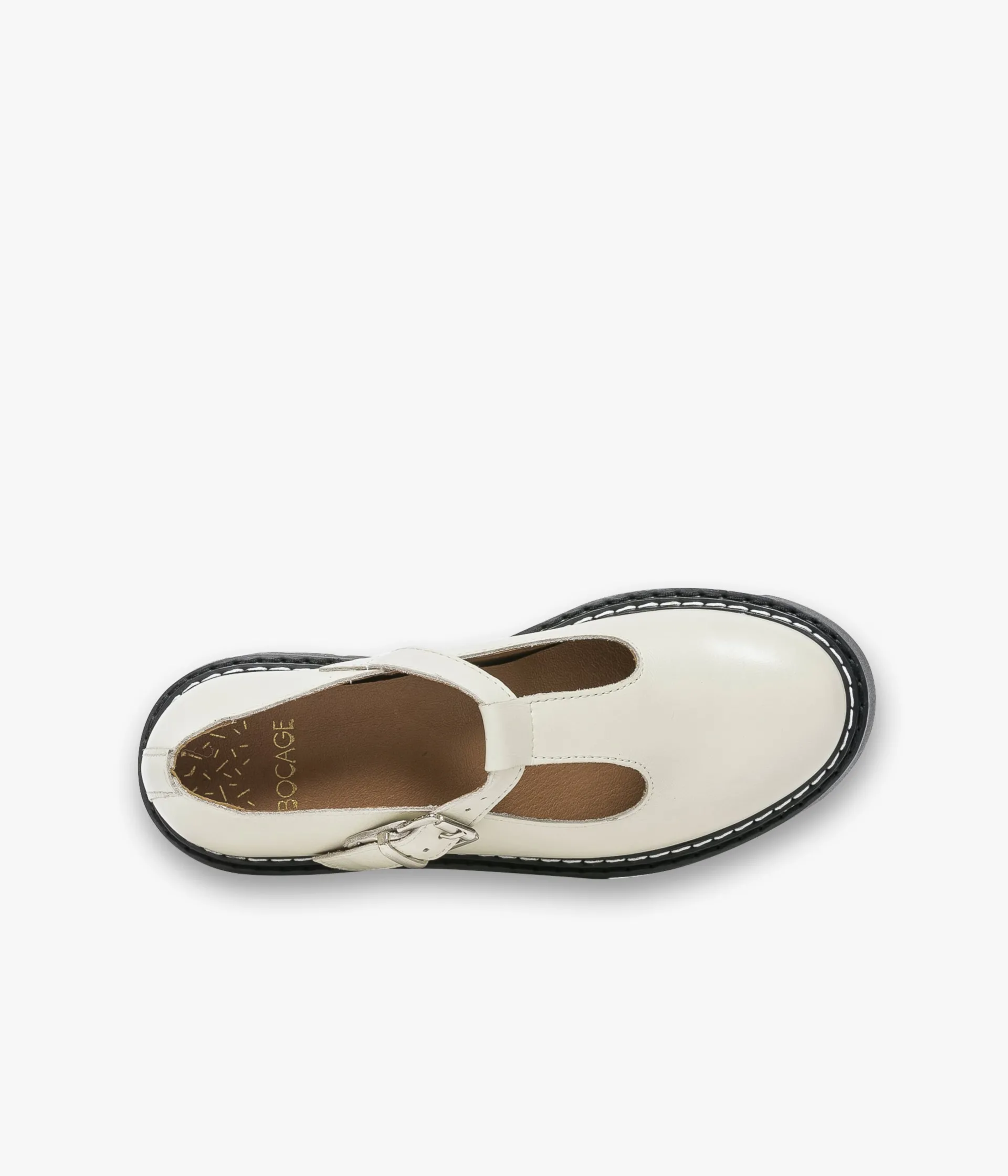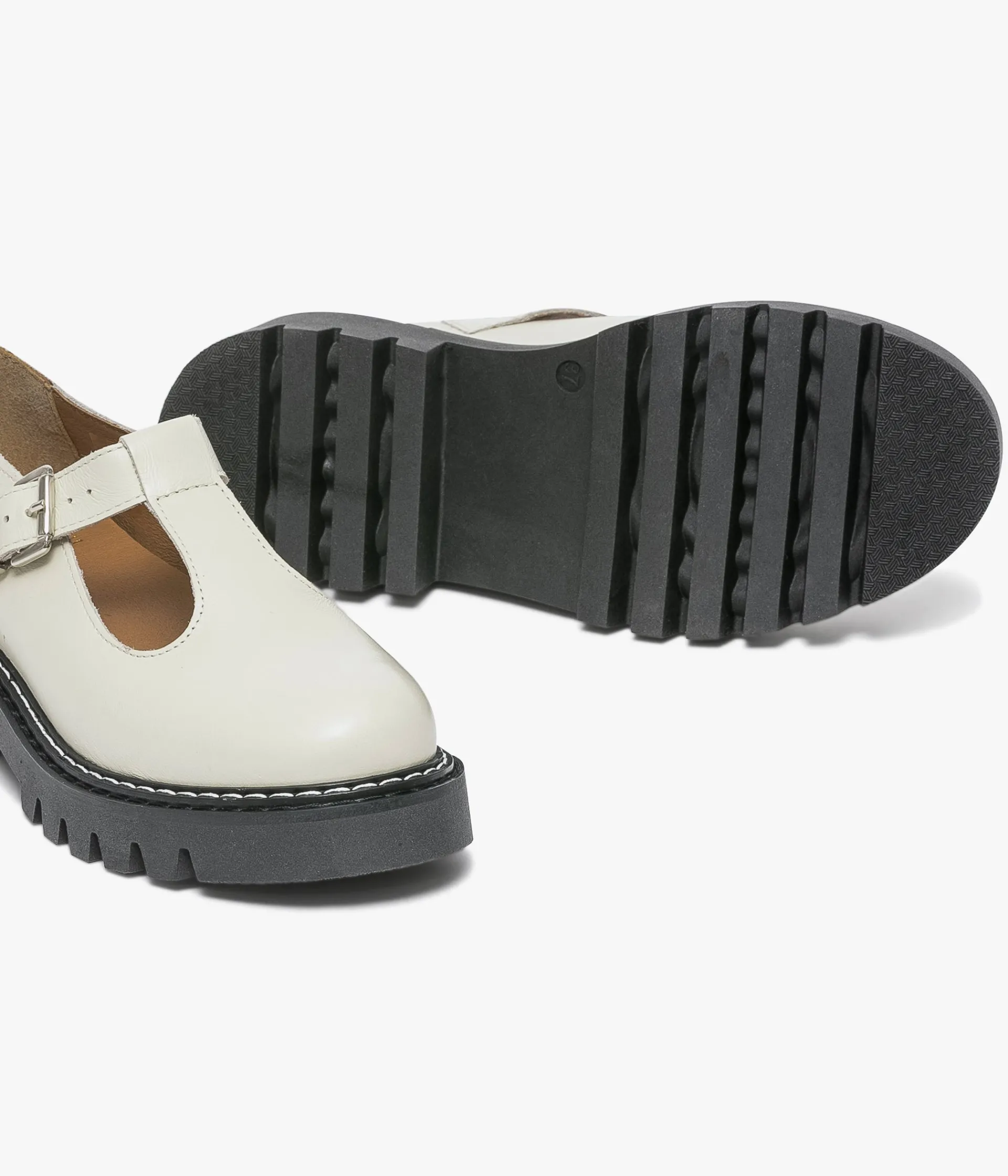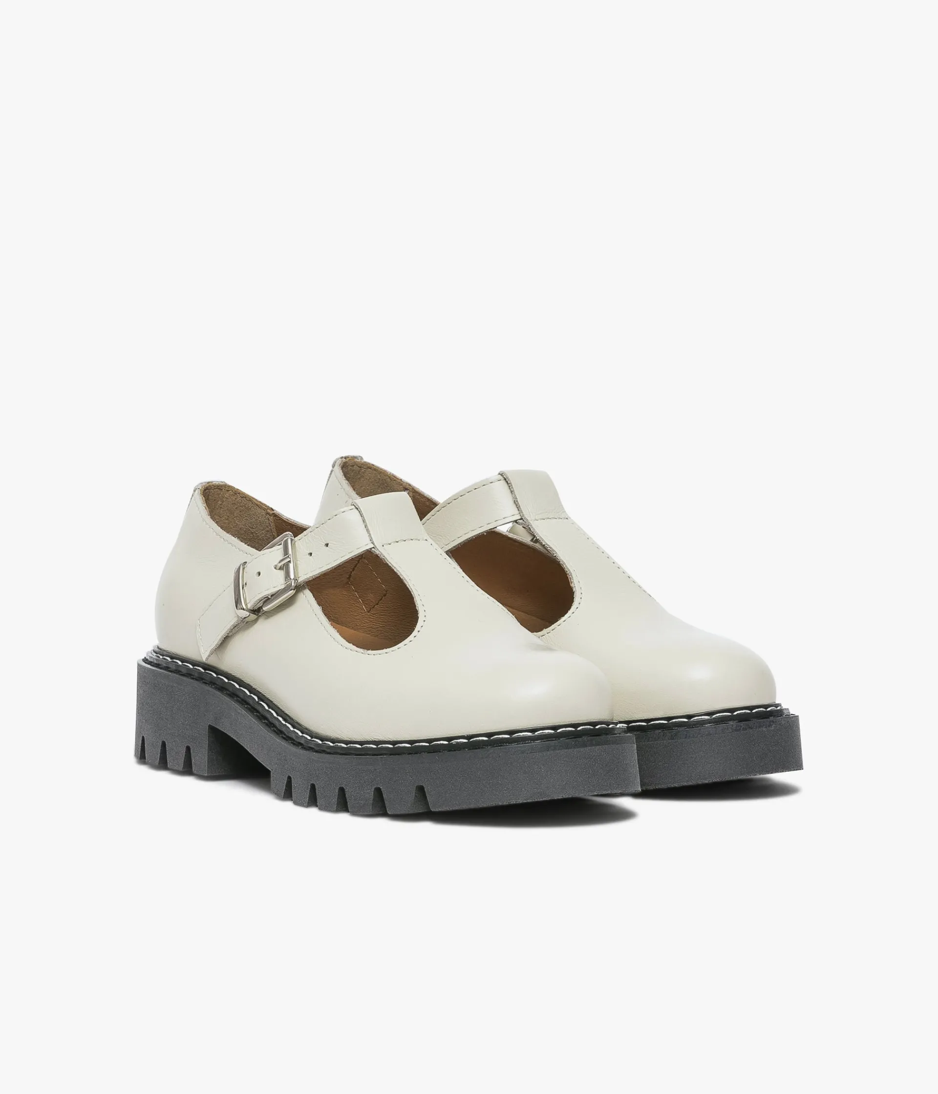 Un Salomé blanc cassé en cuir lisse fabriqué avec soin dans notre propre atelier au Portugal. Une chaussure au look rétro fermée par une boucle en métal argenté et posée sur une épaisse semelle crantée avec trépointe surpiquée. Elle est entièrement doublée cuir avec semelle intérieure cuir dotée d’une fine mousse.