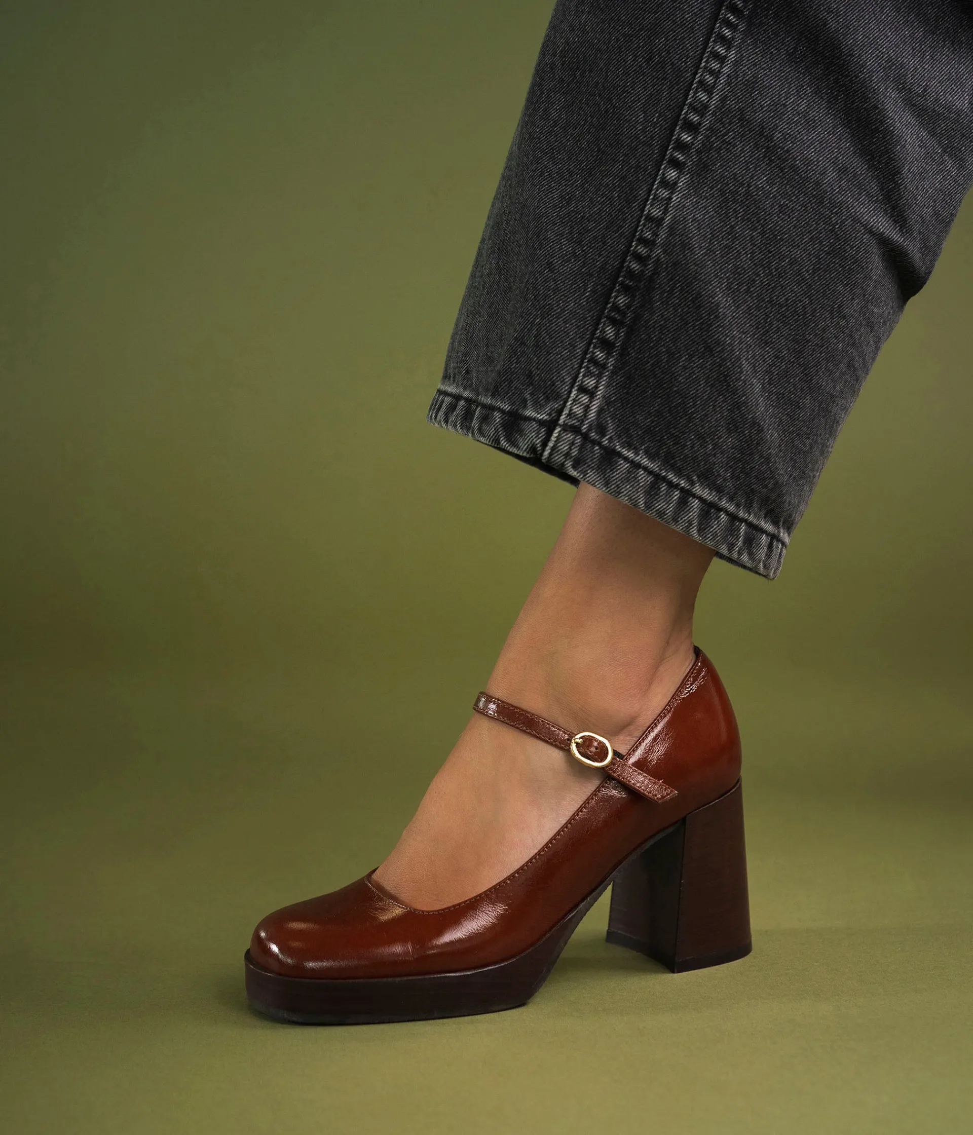 Un escarpin en cuir cognac fabriqué avec le plus grand soin. Un babies élégant aux accents rétro avec son bout carré aux lignes arrondies et sa fine bride fermée par une boucle dorée. Il repose sur une semelle plateforme souple et un talon flare lamellé collé. Une chaussure entièrement doublée cuir avec semelle intérieure cuir moussée. Son cuir vintage est un cuir d'aspect vieilli qui se patine avec le temps, un cuir brillant qui affiche un aspect plus ou moins froissé, dont la tonalité peut varier, et qui peut avoir un aspect « déjà porté ». Elastique d'aisance sous la boucle. Semelle 2 cm. Elastique d'aisance sous la boucle.