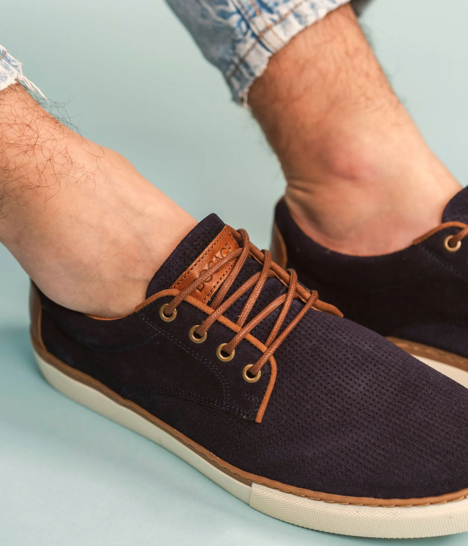 Basket marine en cuir velours avec semelle en caoutchouc blanc. Une version élégante de la basket de ville qui flirte avec la ligne du derby. Cette basket marine en cuir velours possède un aspect perforé sur l’avant du pied et de jolies surpiqûres sur les quartiers. Elle est agrémentée d’une pièce de cuir lisse cognac au talon et d’une autre avec logo embossé sur la languette. Cette basket homme est positionnée sur une semelle en caoutchouc blanc, avec trépointe beige, qui lui assure un look dynamique. La tige et la semelle sont renforcées grâce au cousu latéral. Ce cousu est un gage de qualité quant à sa fabrication et à sa durabilité. Une basket entièrement doublée cuir avec semelle intérieure cuir. Elle s’intègre dans tous les looks casual chics de la saison.