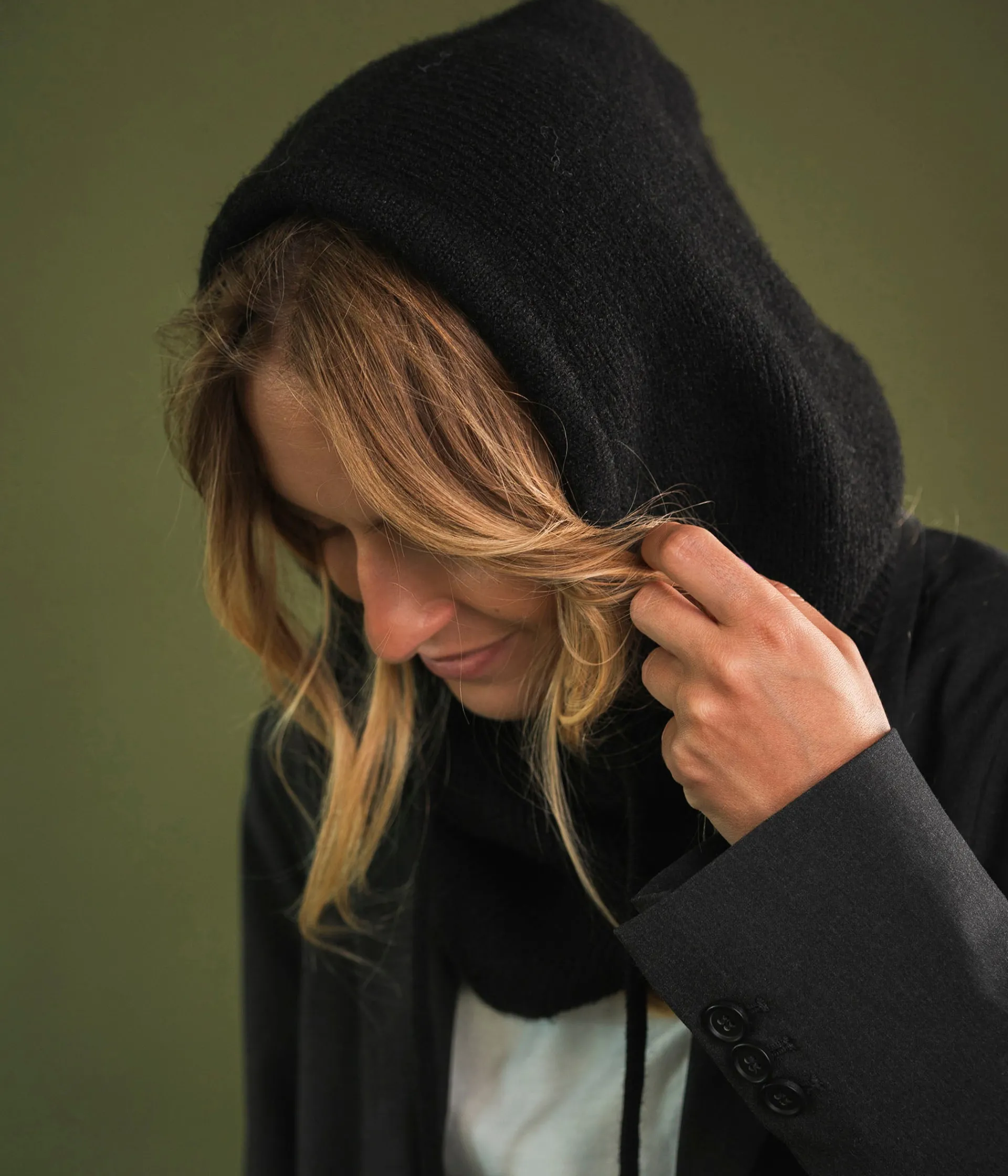 Cette cagoule noire, chaude et élégante, ajoute une touche de confort et de style à vos looks d'hiver. Une cagoule femme revisitée en version urbaine chic qui enveloppe la tête et le cou dans un cocon de douceur et de chaleur. Elle est confectionnée en polyester recyclé et peut s’ajuster grâce à un cordon coulissant.