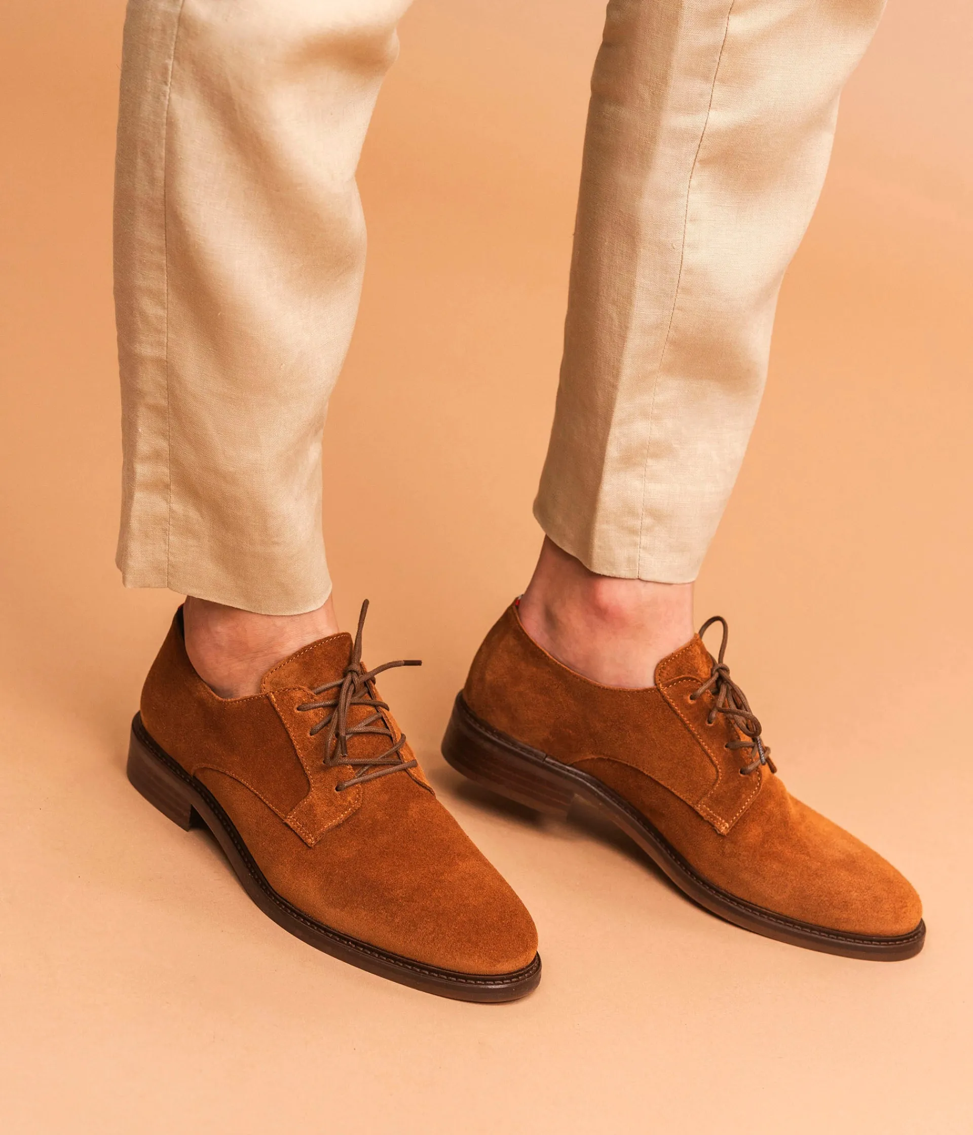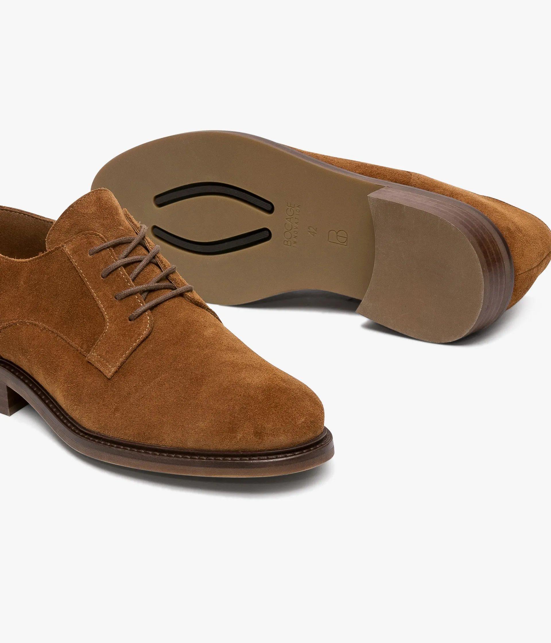 Un derby cognac en cuir velours fabriqué avec soin dans notre propre atelier en France, au cœur du Maine et Loire (49). Une chaussure élégante qui compte parmi les essentiels du vestiaire masculin. Elle se ferme grâce à des lacets ronds et repose sur une semelle avec trépointe cuir piquée. Notre technologie Bocage Innovation vous garantit un bien-être inégalé. La semelle dissimule des élastiques qui permettent à votre chaussure de s’adapter à votre pied. Une chaussure entièrement doublée cuir avec semelle intérieure cuir dotée d’une fine mousse. Petit drapeau tricolore au talon.