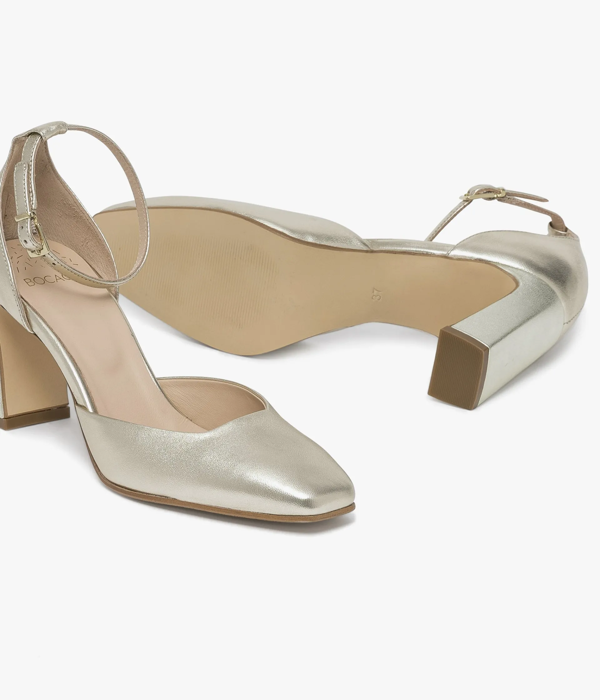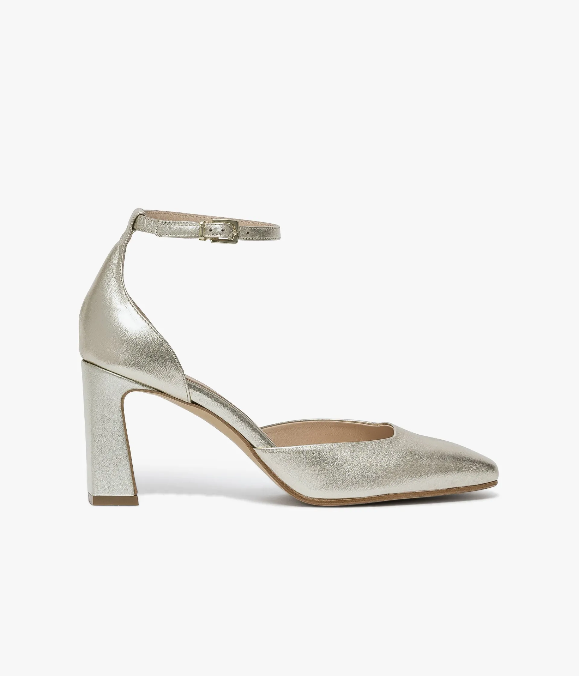 Un escarpin en cuir métallisé platine fabriqué avec le plus grand soin. Un modèle ultra chic qui sublime le pied grâce à un bout carré et un talon haut graphique. Une fine bride entoure la cheville et se ferme à l’aide d’une fine boucle dorée dissimulant un élastique. Un escarpin entièrement doublé cuir avec semelle intérieure cuir dotée d’une fine mousse.
