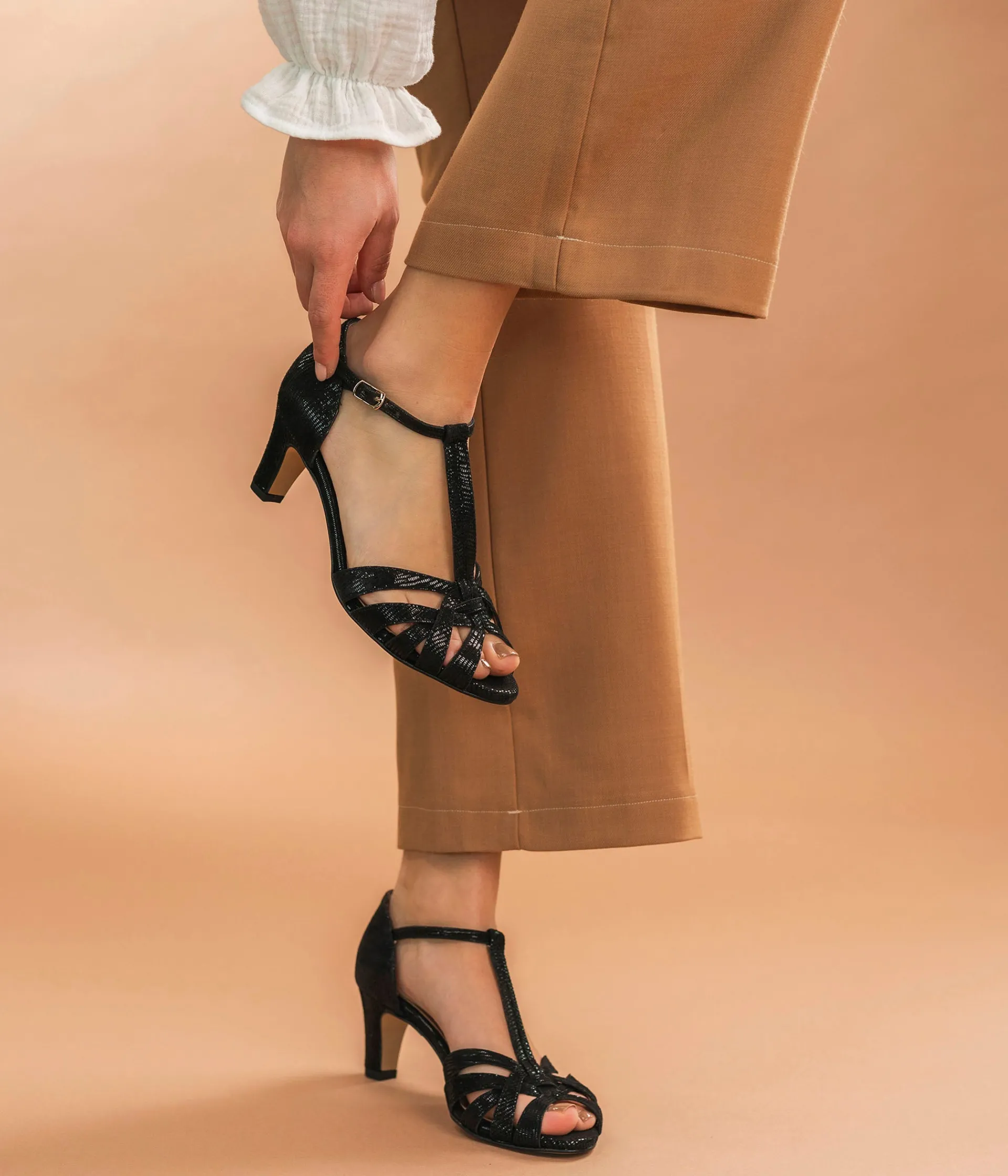 Un escarpin en cuir velours noir aux reflets scintillants fabriqué avec soin dans notre atelier en France, au coeur du Maine et Loire (49). Une chaussure de cérémonie forme Salomé avec talon fermé qui offre un excellent maintien. Elle est entièrement doublée cuir avec semelle intérieure cuir et repose sur une semelle fine et talon enrobé parfaitement stable. Fermeture par boucle dorée.