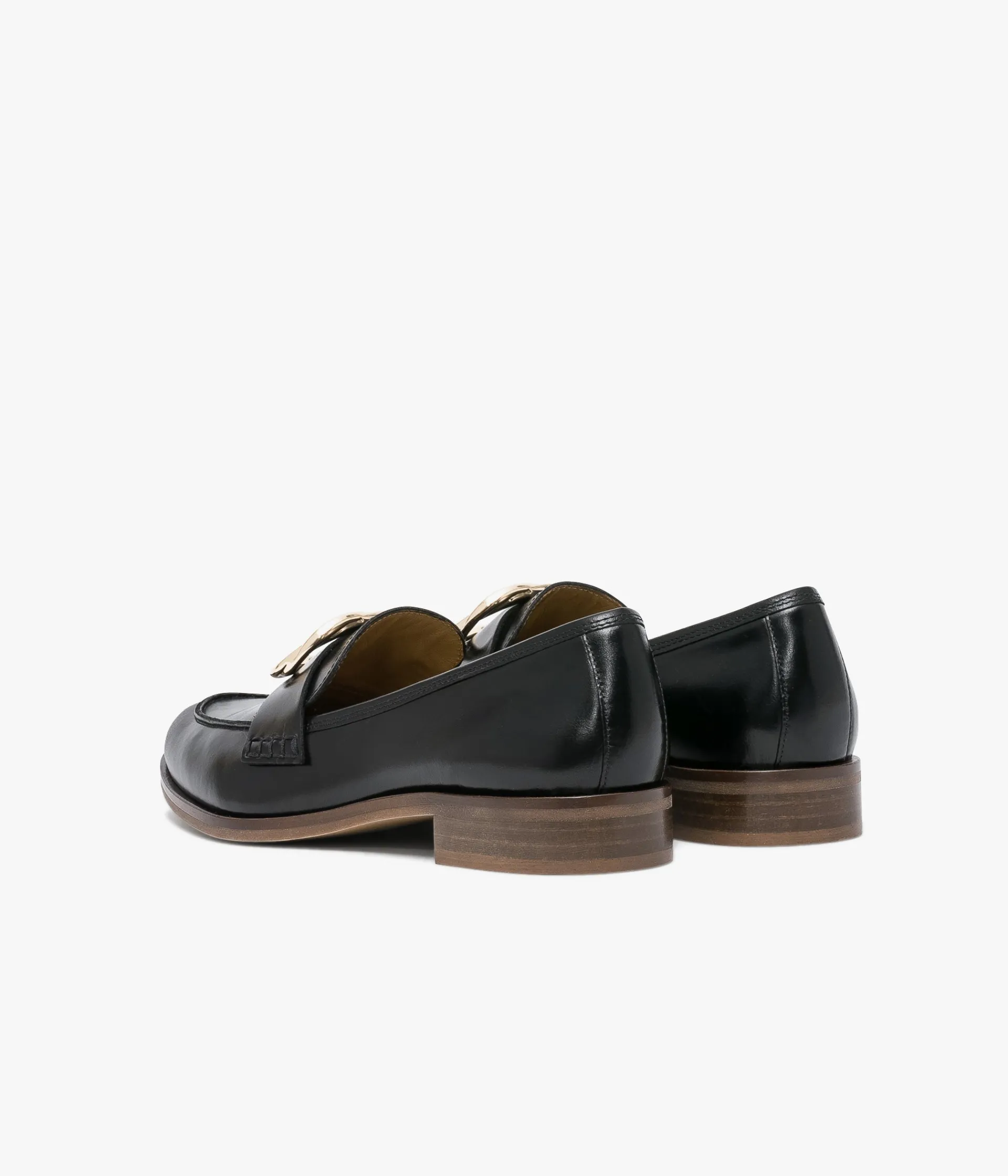 Un mocassin noir en cuir lisse fabriqué avec soin dans notre propre atelier en France, au cœur du Maine et Loire (49). Il affiche un look ultra féminin avec son bout amande et son bandeau agrémenté de piqûres sellier et d’une élégante boucle dorée. Une chaussure entièrement doublée cuir avec semelle intérieure cuir dotée d’une fine mousse. Elle est posée sur une semelle fine avec trépointe cuir et large talon lamellé collé. Notre technologie Bocage Innovation vous garantit un bien-être inégalé. La semelle dissimule des élastiques qui permettent à votre chaussure de s’adapter à votre pied.