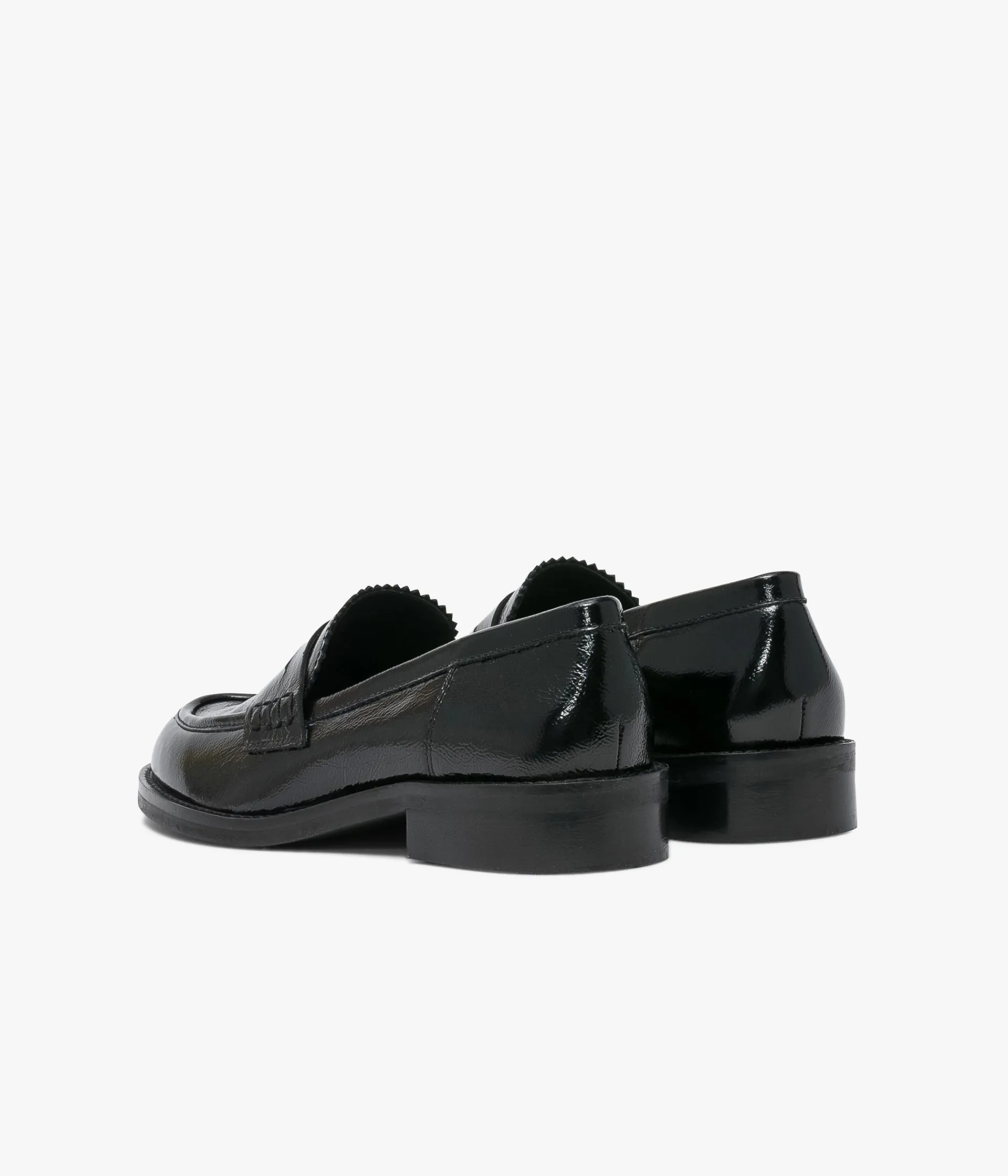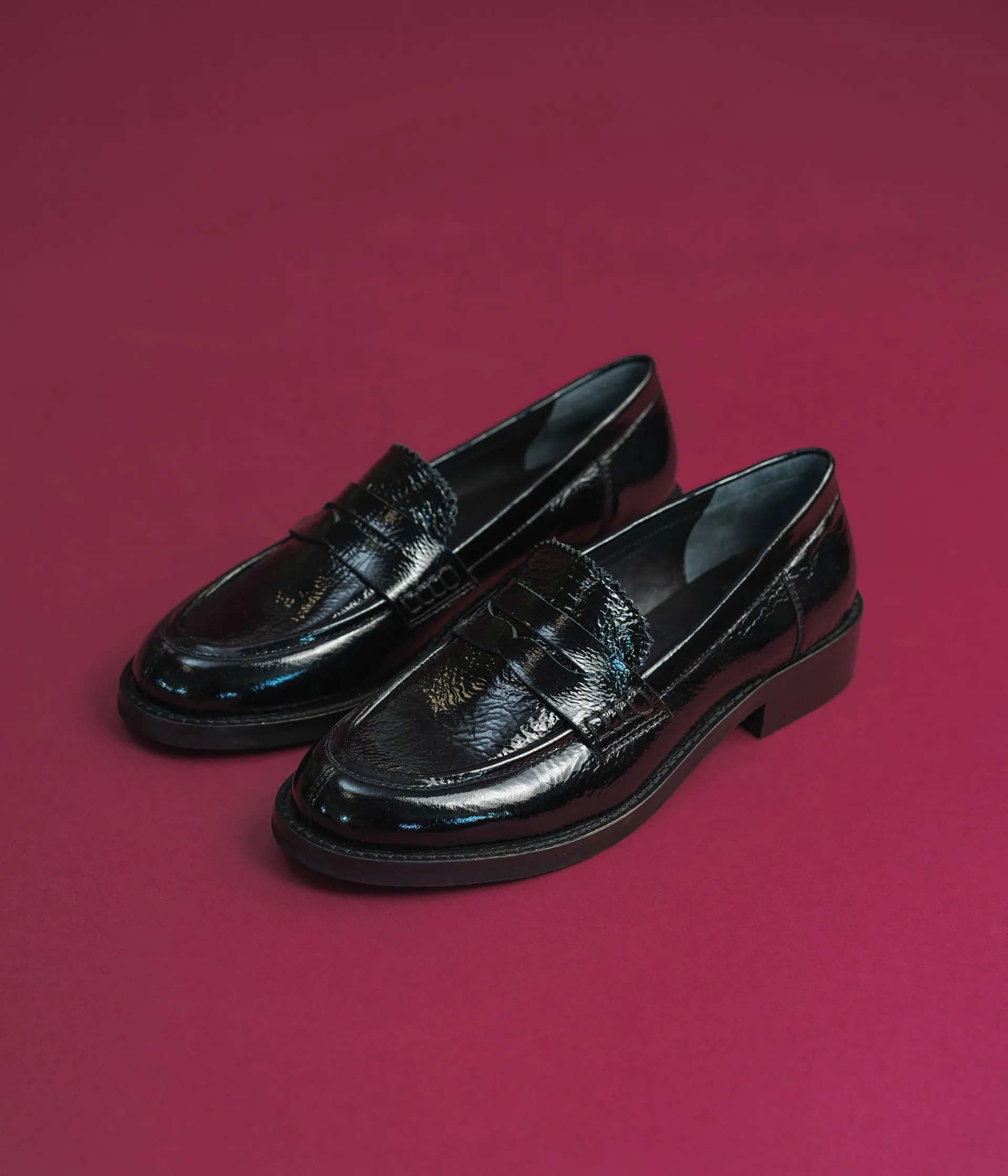 Un mocassin noir en cuir verni fabriqué avec le plus grand soin. Il affiche une couture en relief sur le dessus et un bandeau perforé avec piqûres sellier. Une chaussure élégante avec bout amande et finitions dentelées sur le bord de la languette. Elle repose sur une semelle ton sur ton avec trépointe cuir piquée. Notre technologie Bocage Innovation vous garantit un bien-être inégalé. La semelle dissimule des élastiques qui permettent à votre chaussure de s’adapter à votre pied. Un mocassin entièrement doublé cuir avec semelle intérieure cuir dotée d’une fine mousse.