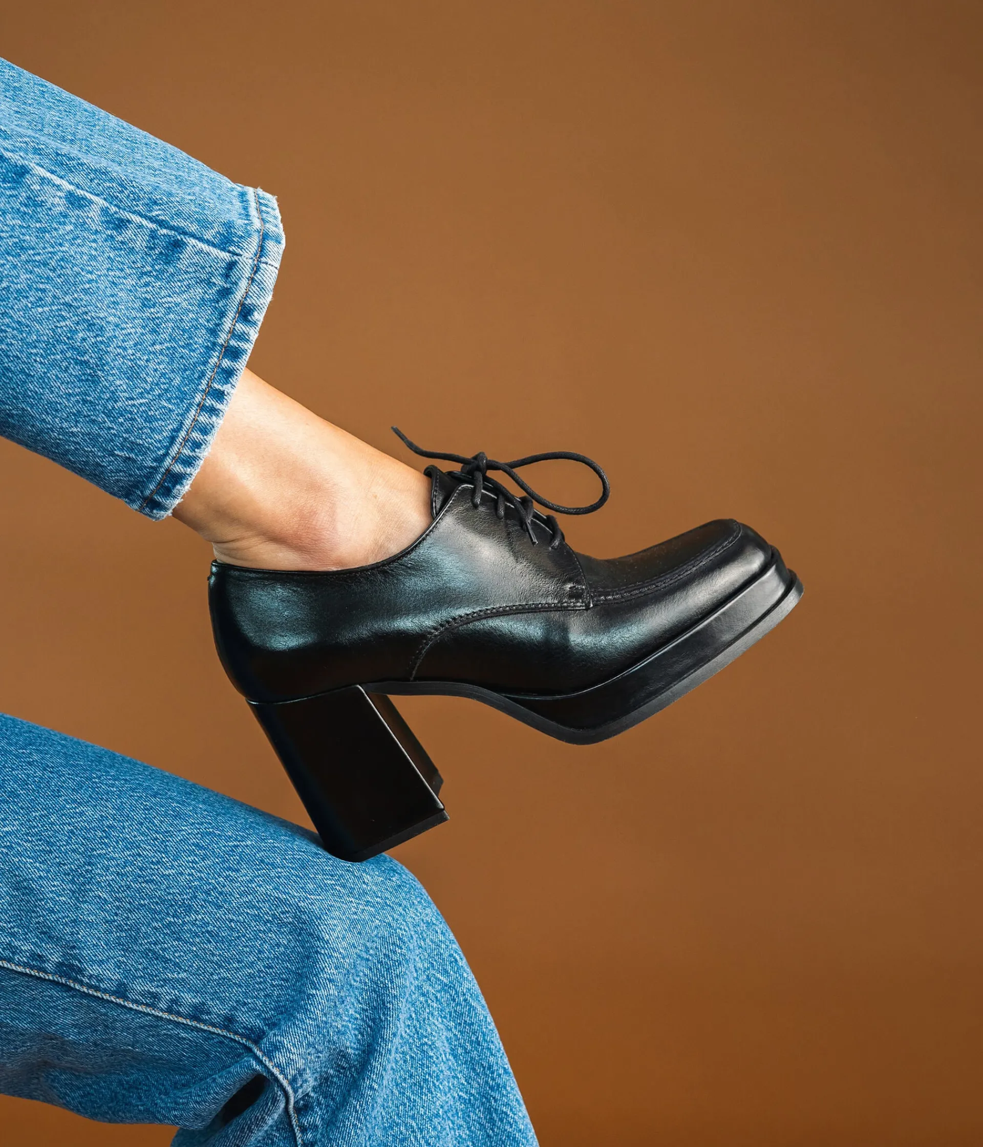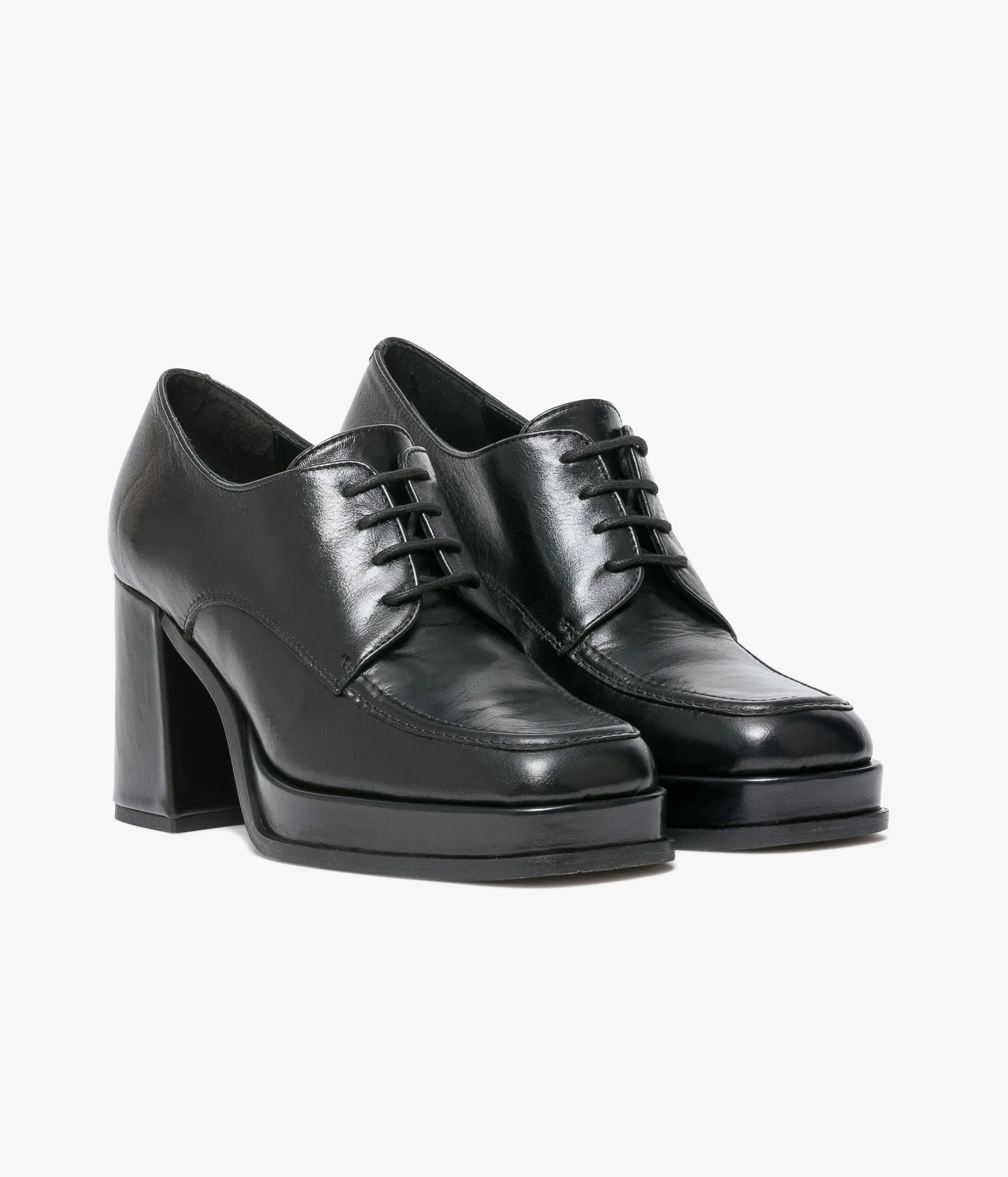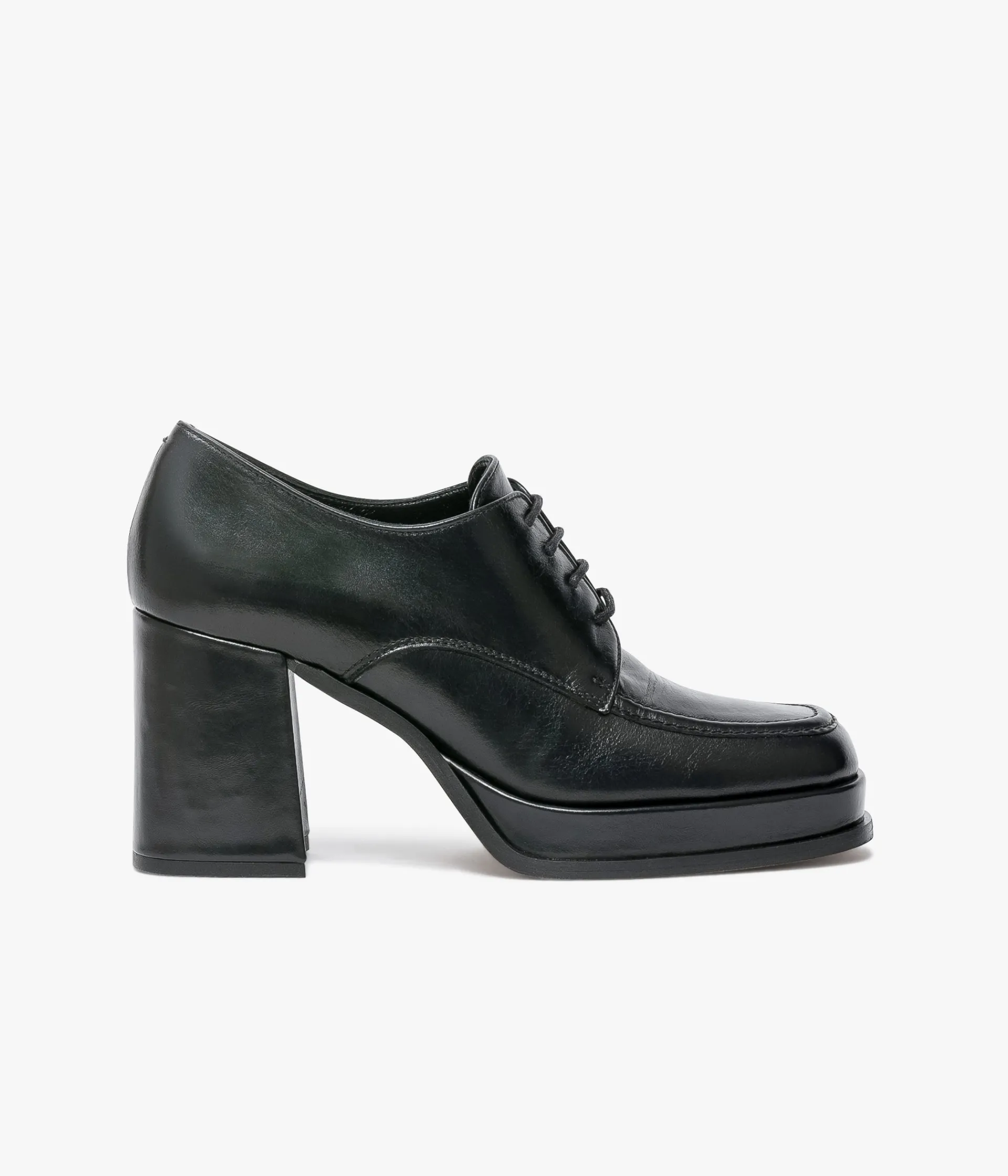 Un richelieu noir en cuir lisse fabriqué avec le plus grand soin. Ce derby à plateforme et large talon flare signe le retour du rétro. Son bout carré est souligné par une couture en relief. Il se ferme grâce à un lacet rond. Une chaussure entièrement doublée cuir avec semelle intérieure cuir dotée d’une fine mousse. Plateforme 2 cm.