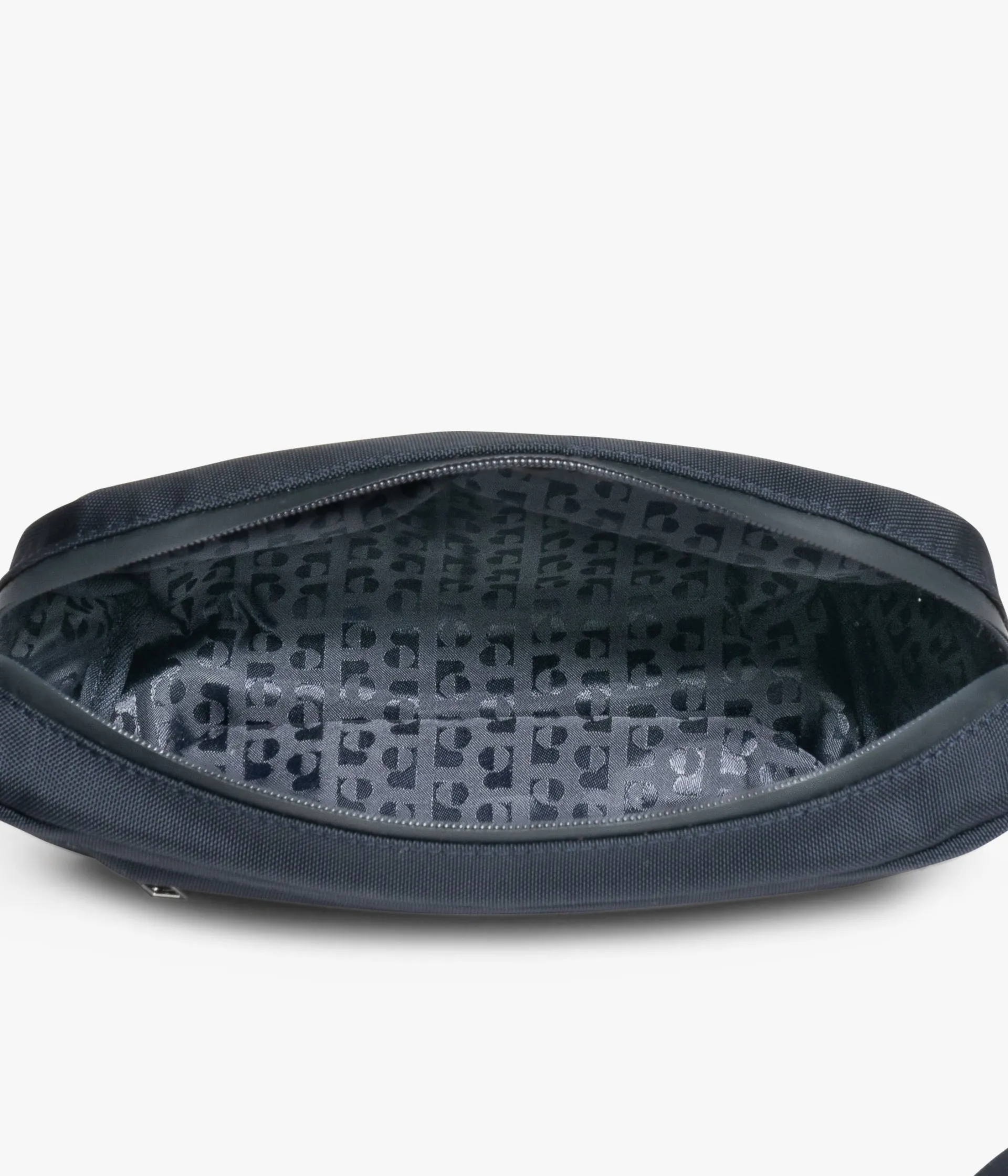 Une banane marine pour homme en toile de nylon déperlante. Pratique, elle possède un compartiment principal et deux poches fermées par des zips hermétiques, ainsi qu'une pochette zippée à l'intérieur. Cette banane est signée grâce à un logo métallique ton sur ton. Elle se porte de travers grâce à sa bandoulière ajustable en longueur fixée sur des empiècements en cuir marron. Doublure avec monogramme. Dimensions : H16xL28xP7 cm.