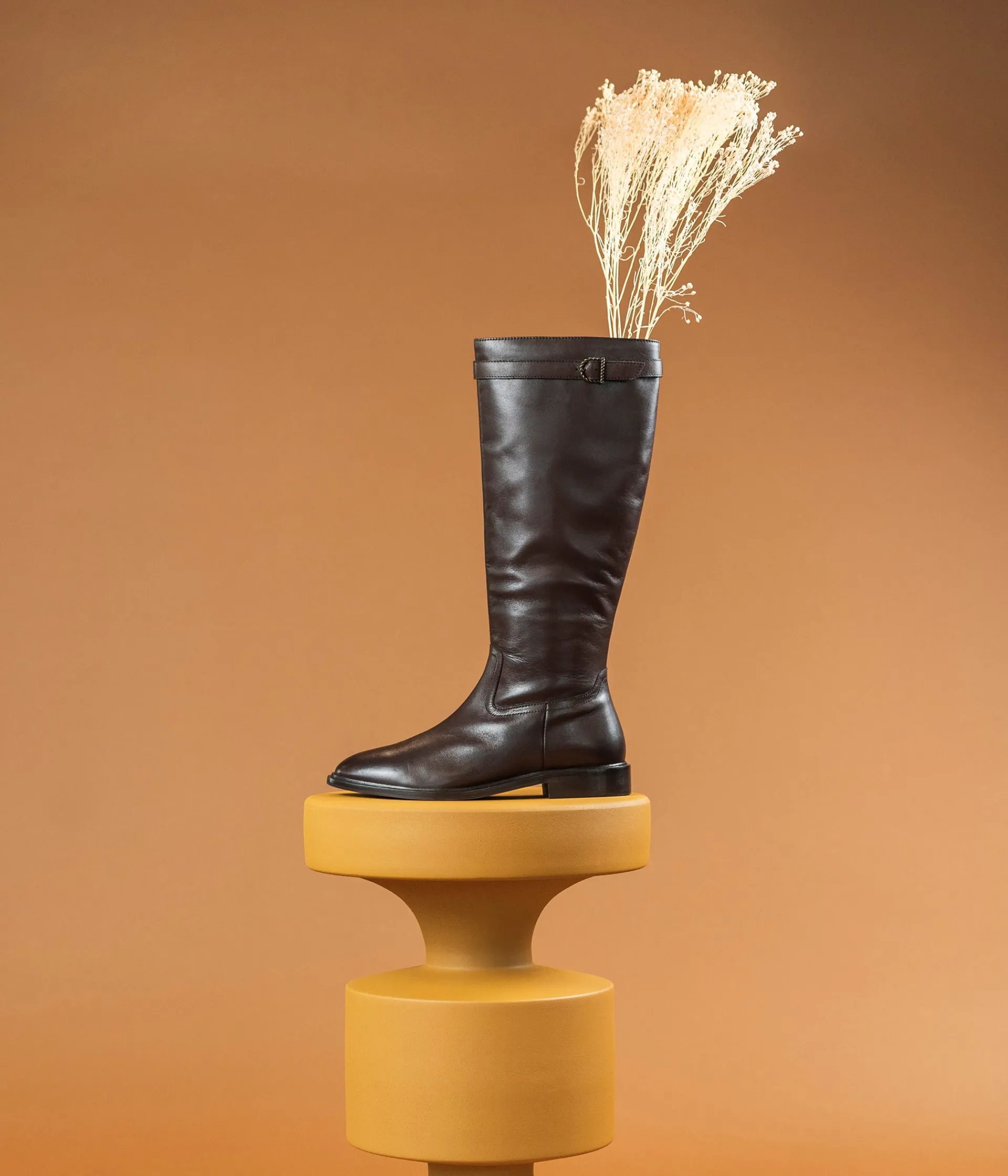 Une magnifique botte en cuir lisse chocolat inspirée de la botte cavalière avec son bout amande et son talon plat. Le haut de la tige est agrémenté d’une fine bride de cuir avec boucle en métal ciselé dissimulant un élastique. Cette jolie botte se ferme facilement grâce à un zip intérieur et possède un élastique d’aisance en haut de la tige. Cette chaussure possède la technologie brevetée Bocage Innovation, ainsi votre chaussure s'adaptera aux largeurs de votre pied et vous garantira un bien-être inédit. Une botte entièrement doublée cuir avec semelle intérieure cuir.