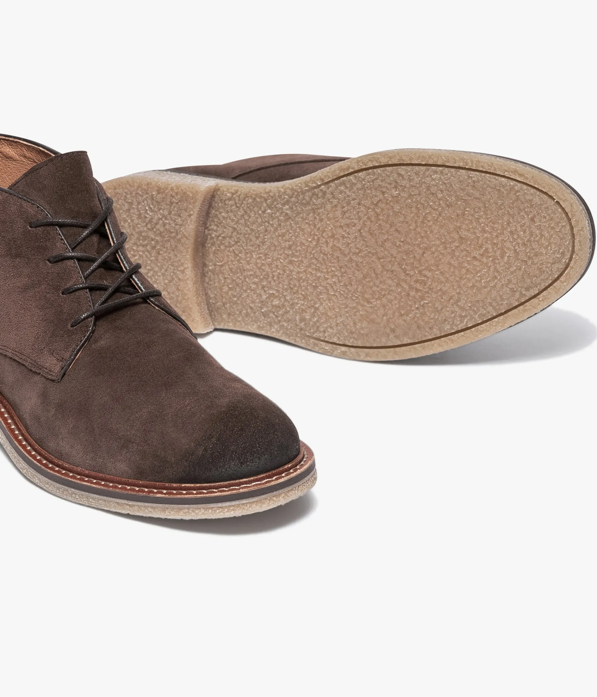 Low-bots chocolat en cuir velours sur semelle aspect crêpe. Un boots en cuir velours chocolat à l’allure particulièrement décontractée avec son bout amande légèrement patiné et sa semelle aspect crêpe. Cette bottine possède de jolies finitions en cuir lisse marron sur le col, assorties aux lacets. Sa semelle confortable est surmontée d’une trépointe cuir surpiquée. Chaussure entièrement doublée cuir avec semelle intérieure cuir. Talon 2,5 cm. Tige 10 cm. Un low-boots casual qui s’intégrera dans de nombreux looks.